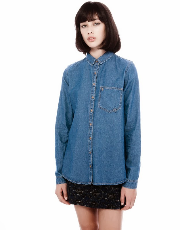 κλασσικό μπλε του denim. Φόρεσέ το με μαύρη pencil φούστα και μποτάκια. Ή με full skirt και γόβες. Ο συνδυασμός